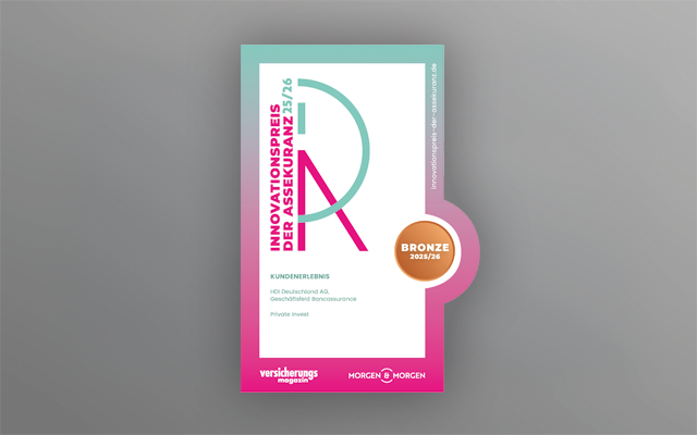 MORGEN & MORGEN und das Versicherungsmagazin zeichneten Private Invest der HDI Bancassurance im November 2025 mit dem Bronze Innovationspreis in der Kategorie Kundenerlebnis aus.